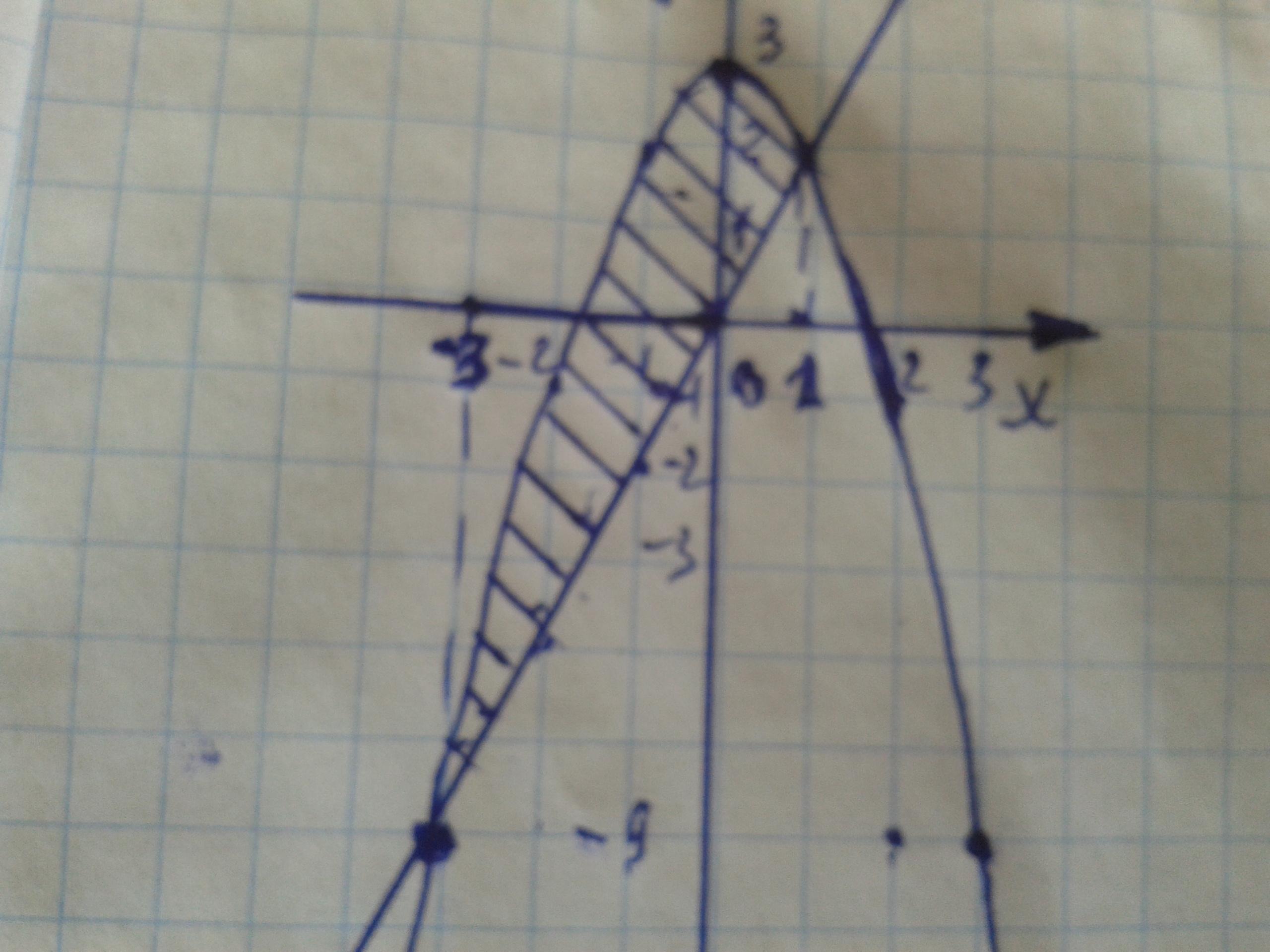 y=-x^2+3, y=2x вычислите площадь фигуры ограниченной линиями