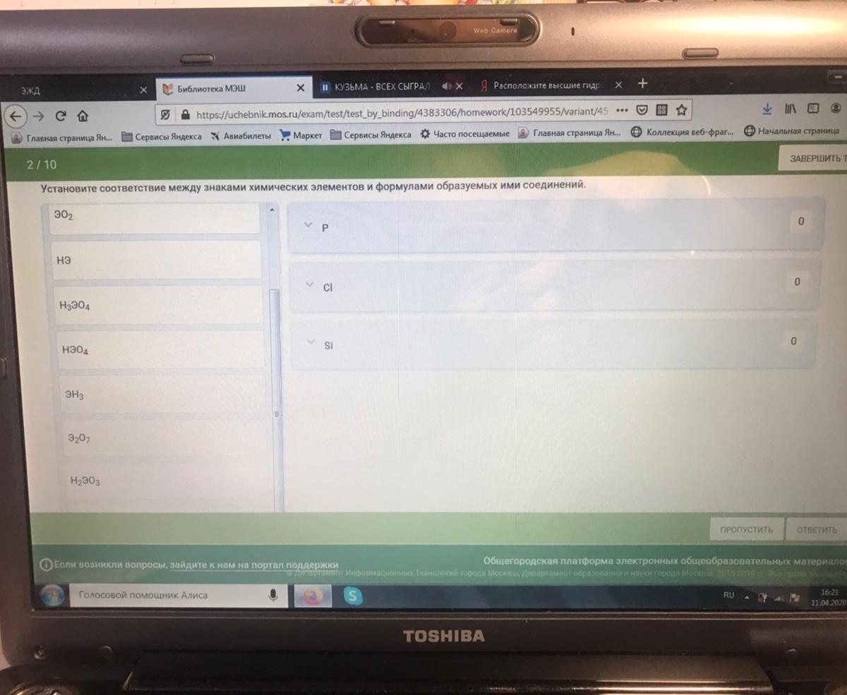 Установите соответствие между знаками хим.элементов и формулами образуемых ими соединений: