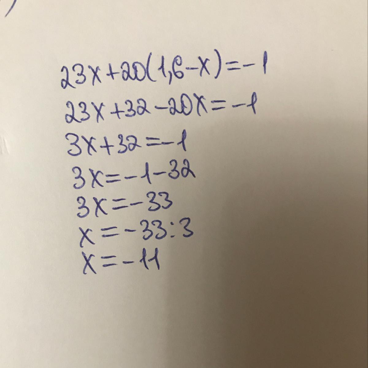 Розв'язати рівняння:23х+20(1,6-х)=-1
