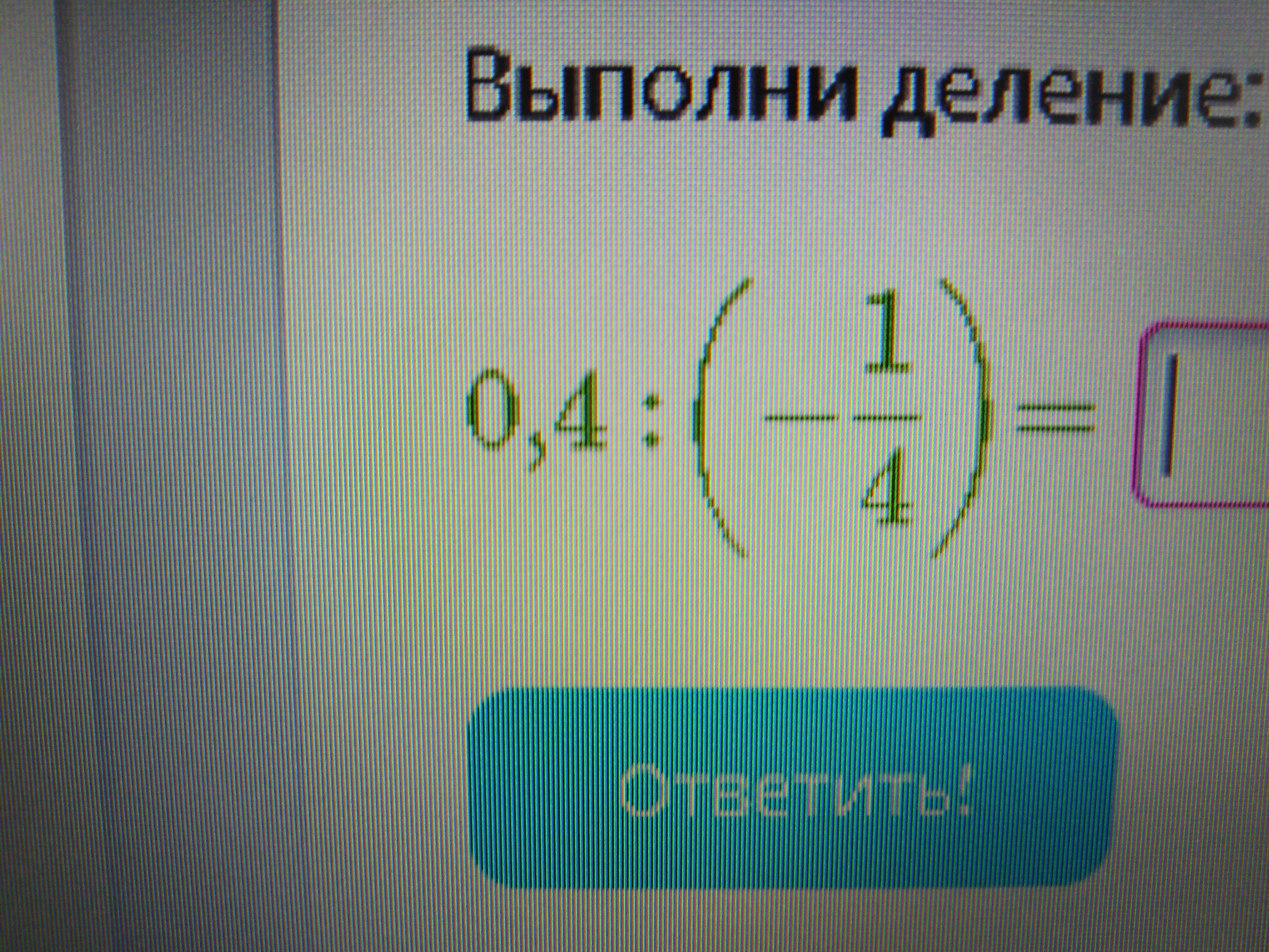 0,4 ÷ (-1/4) = 0,4 · (-4/1) = 4/10 · (-4/1) = -16/10 = -1,6