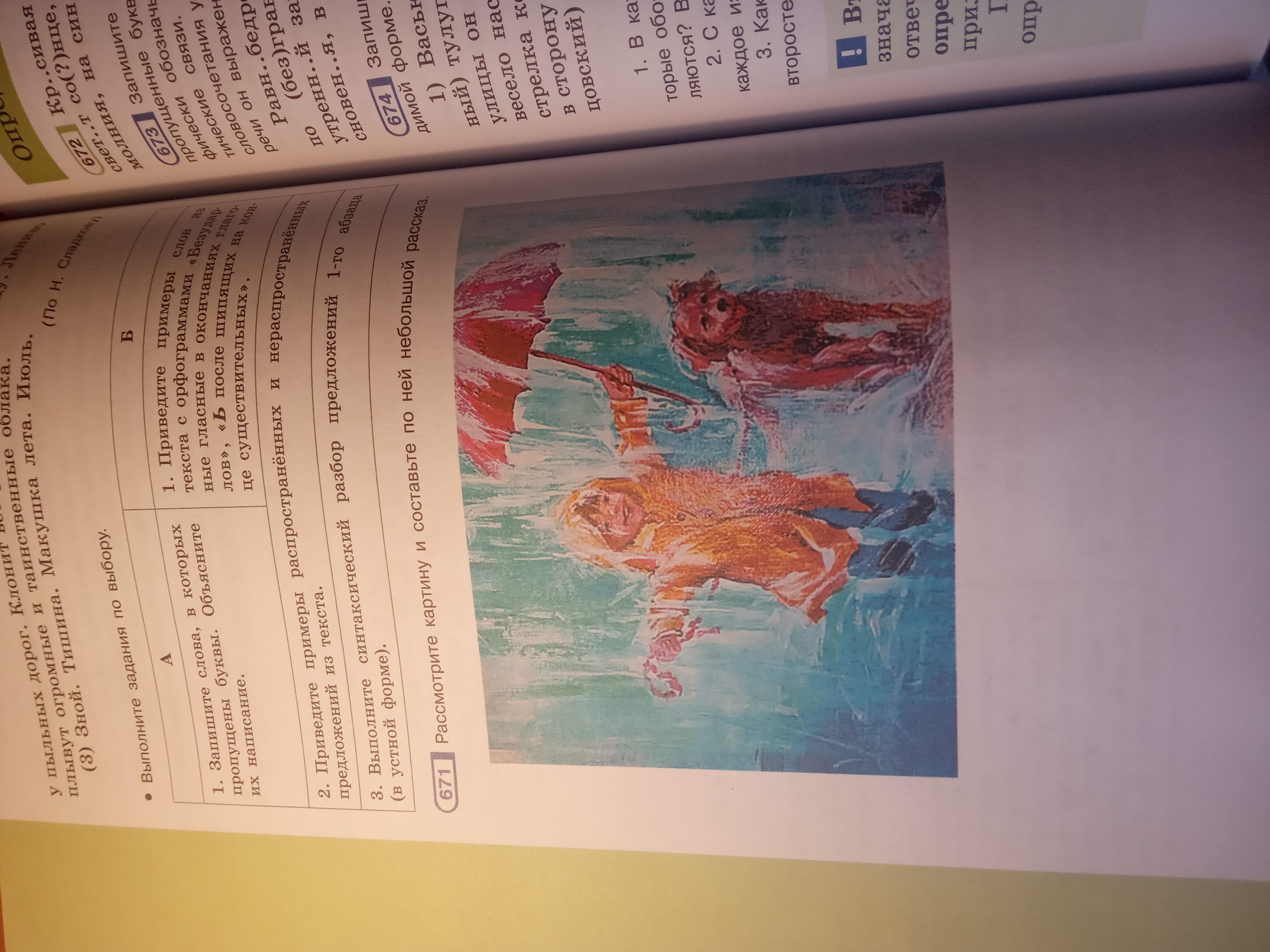 Мама сказала ему,чтобы он надел дождевик и взял зонтик,так как небо хмурилось и все ожидали дождя.После нескольких минут прогулки начался сильный ливень,который не напугал наших героев,наоборот,обрадовал их.Они радостно прыгают по лужам,улыбаются,выглядят счастливыми.По приходу домой,неразлучные друзья испачкали весь пол в коридоре,который мама мыла в обед.Она разозлилась,но быстро успокоилась и позвала мальчика с собакой ужинать.