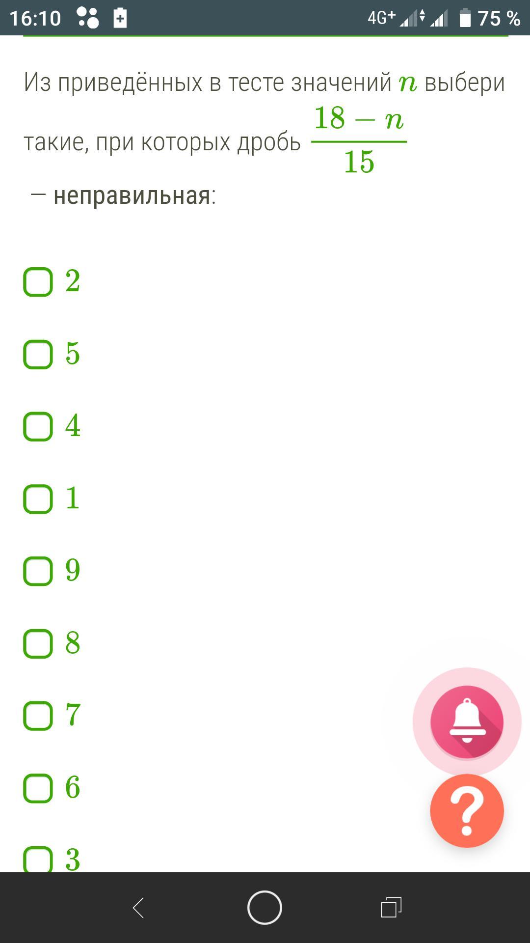 В нашем случае дробь будет неправильной, если числитель 18-n будет больше 15 или равен 15.