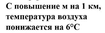 Так как с повышением на 1 км. t воздуха понижается на 6° мы можем сделать следующее: