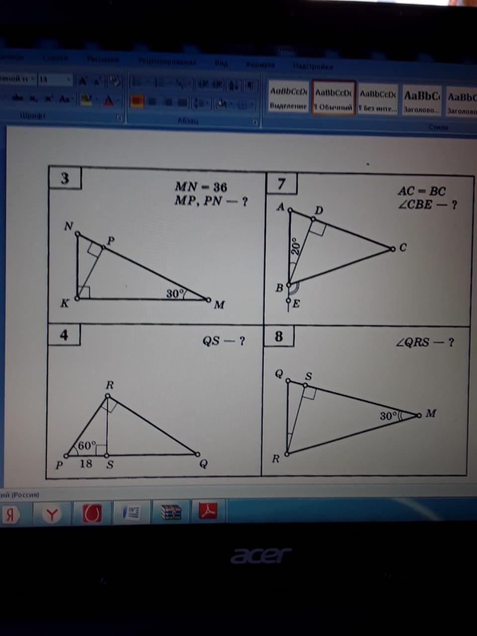 3)Нам известно что угол М равен 30 градусам. В прямоугольном треугольнике сумма острых углов равна 90°. Значит угол N равен 60°. Высота КР перпендикулярна стороне NM,и образует прямой угол. Нам уже известно что угол N равен 60°,тогда выходит что угол NKP равен 30°.