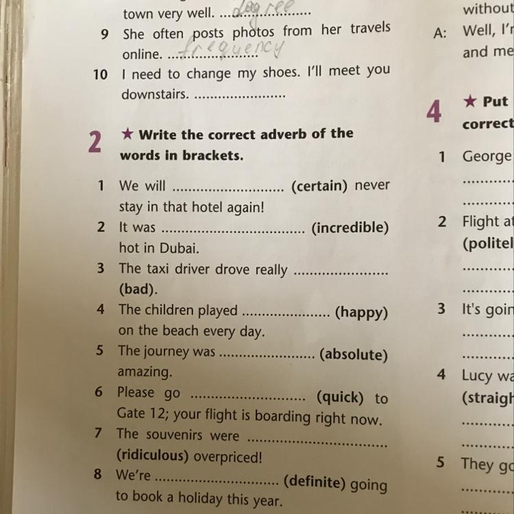 6 Please go (quickly) to Gate 12; your flight is boarding right now.