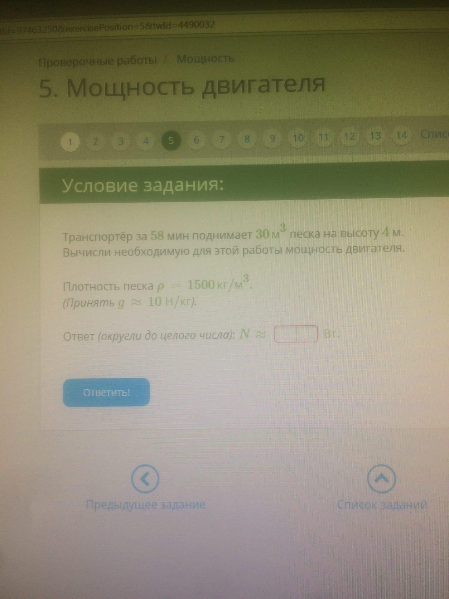 Объяснение: Дано: t=58мин. V=30м3 h=4м. p=1500 кг/м3 g=10Н/кг