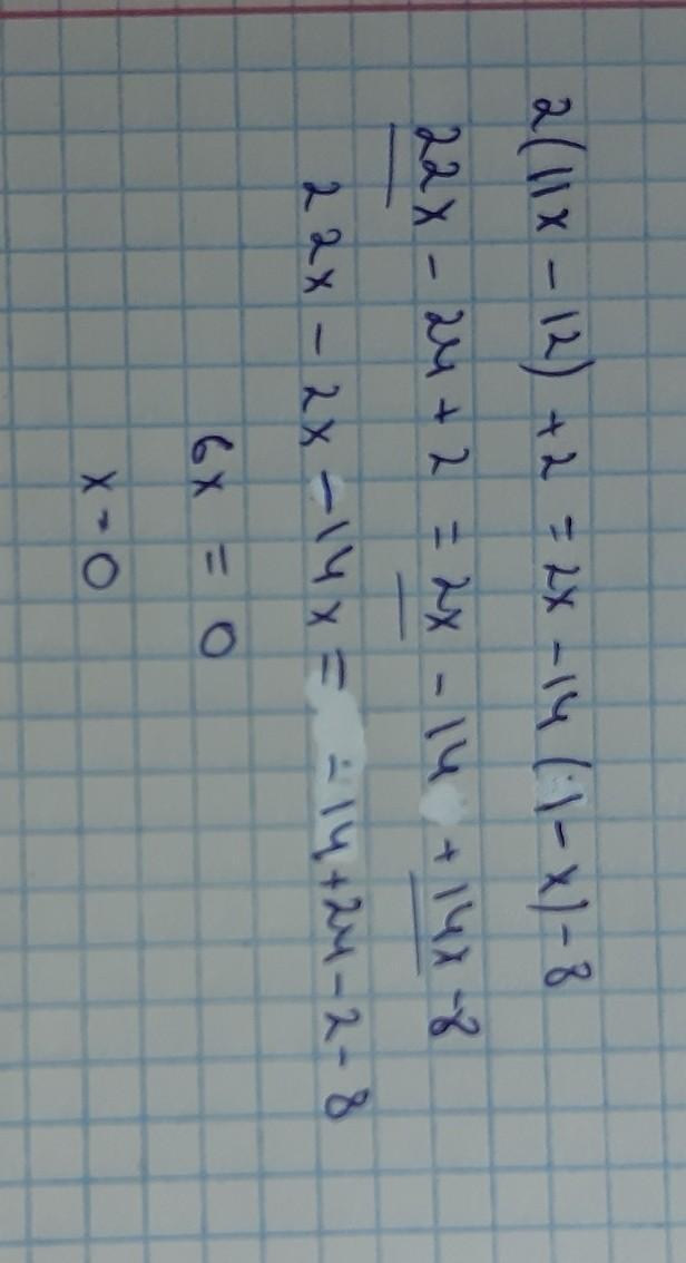 2(11х-12)+2=2х-14(1-х)-8 преобразуйте уравнение к линейному виду