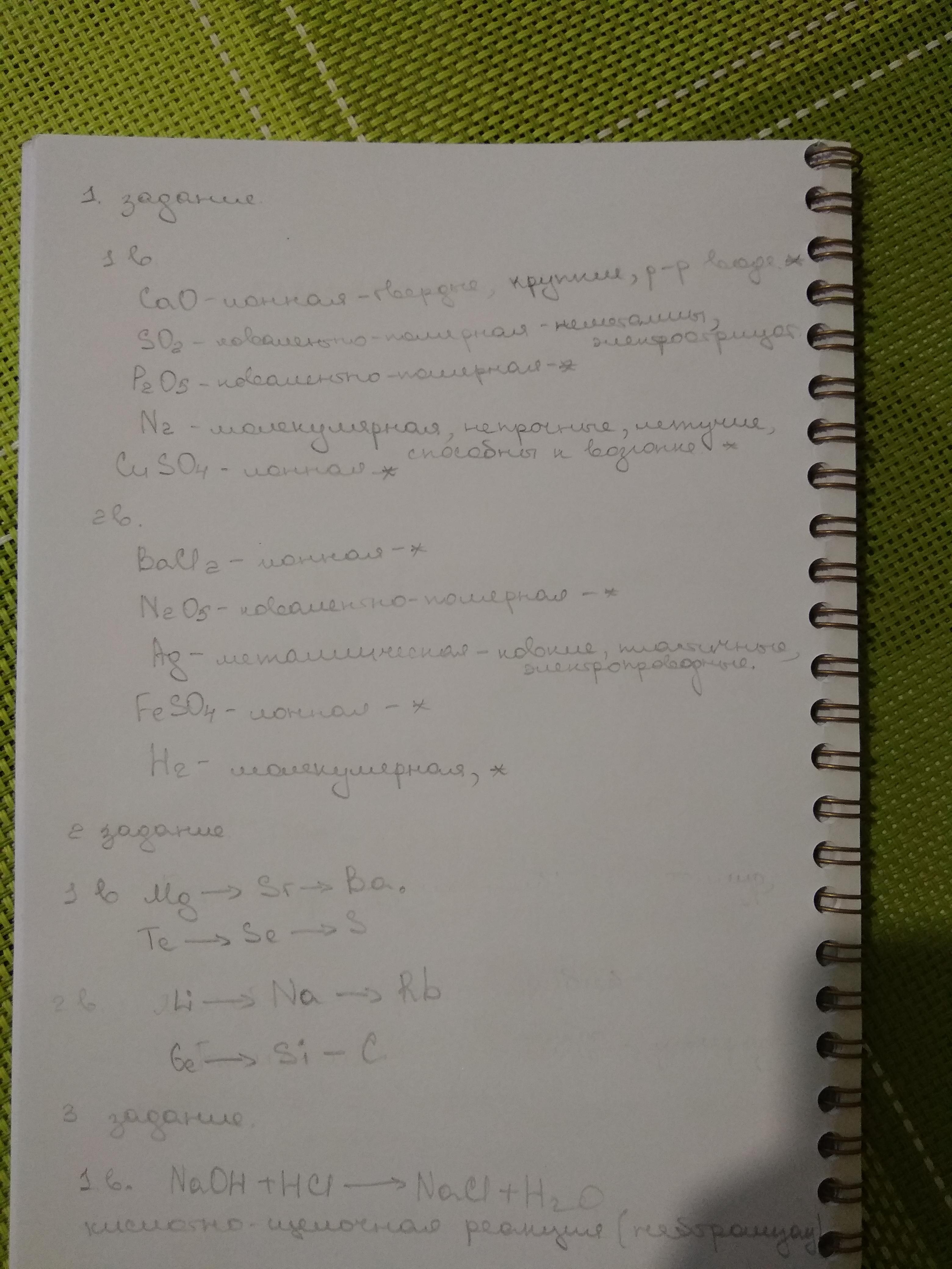 Задание 1. Определите вид химической связи, тип кристаллической решётки, опишите физ.св-ва.