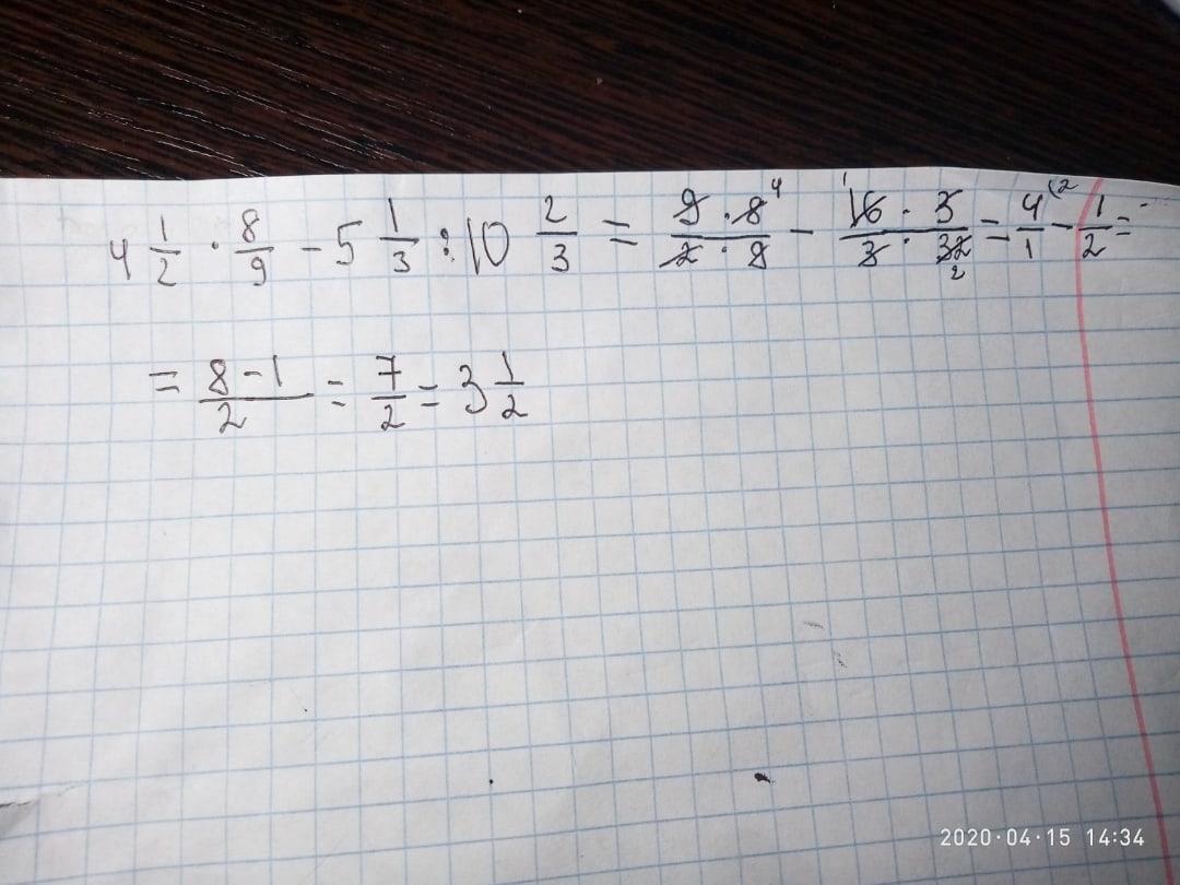 Решить 4 целых 1дробь2*8дробь9-5целых1дробь3:10целых2дробь3