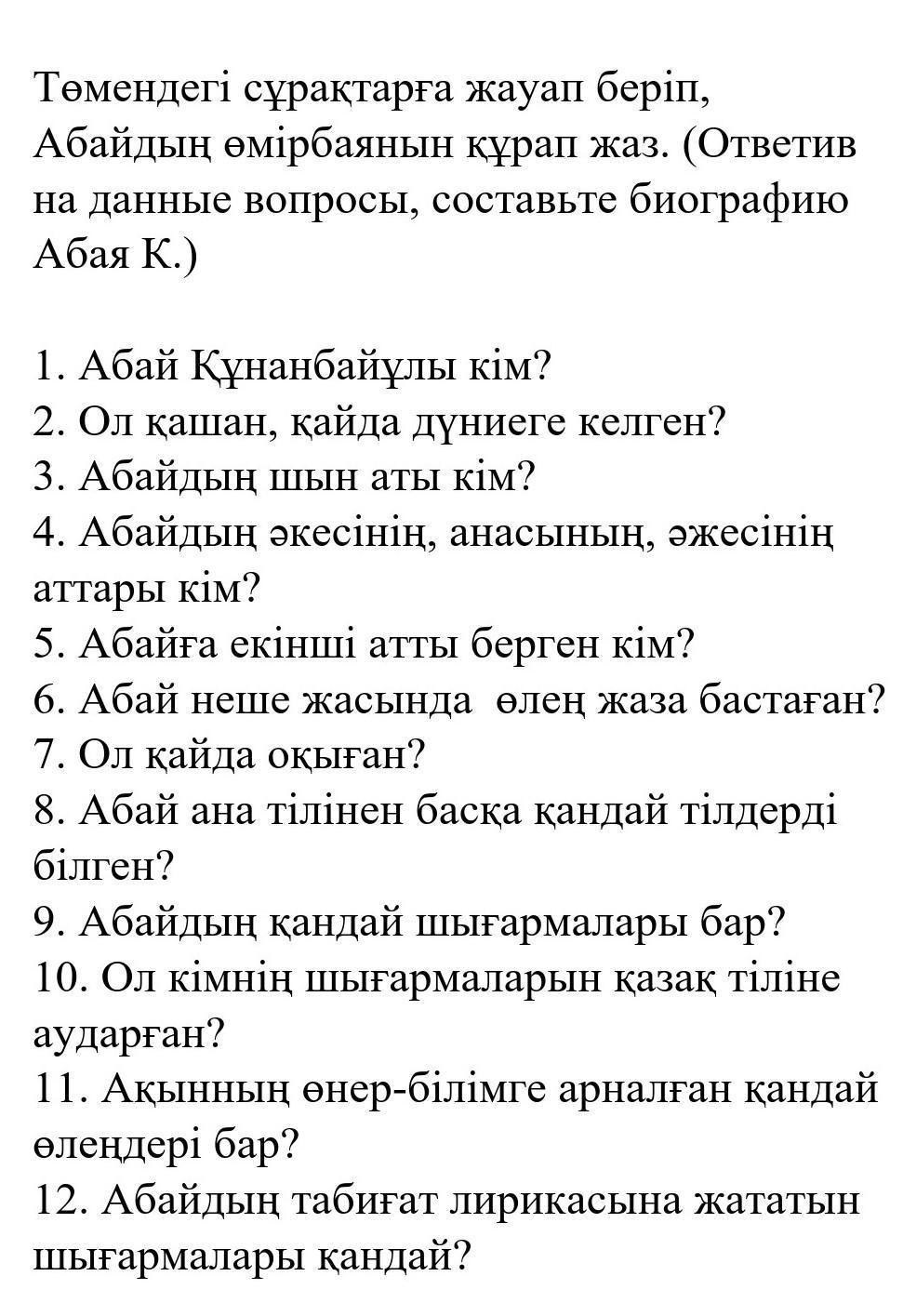 пожалуйста пожалуйста ответьте на эти вопросы заранее спасибо даю 20 баллов казахский язык 6 класс