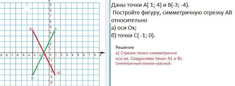 Даны точки А( 1; 4) и В(-3; -4). Постройте фигуру, симметричную отрезку АВ относительно