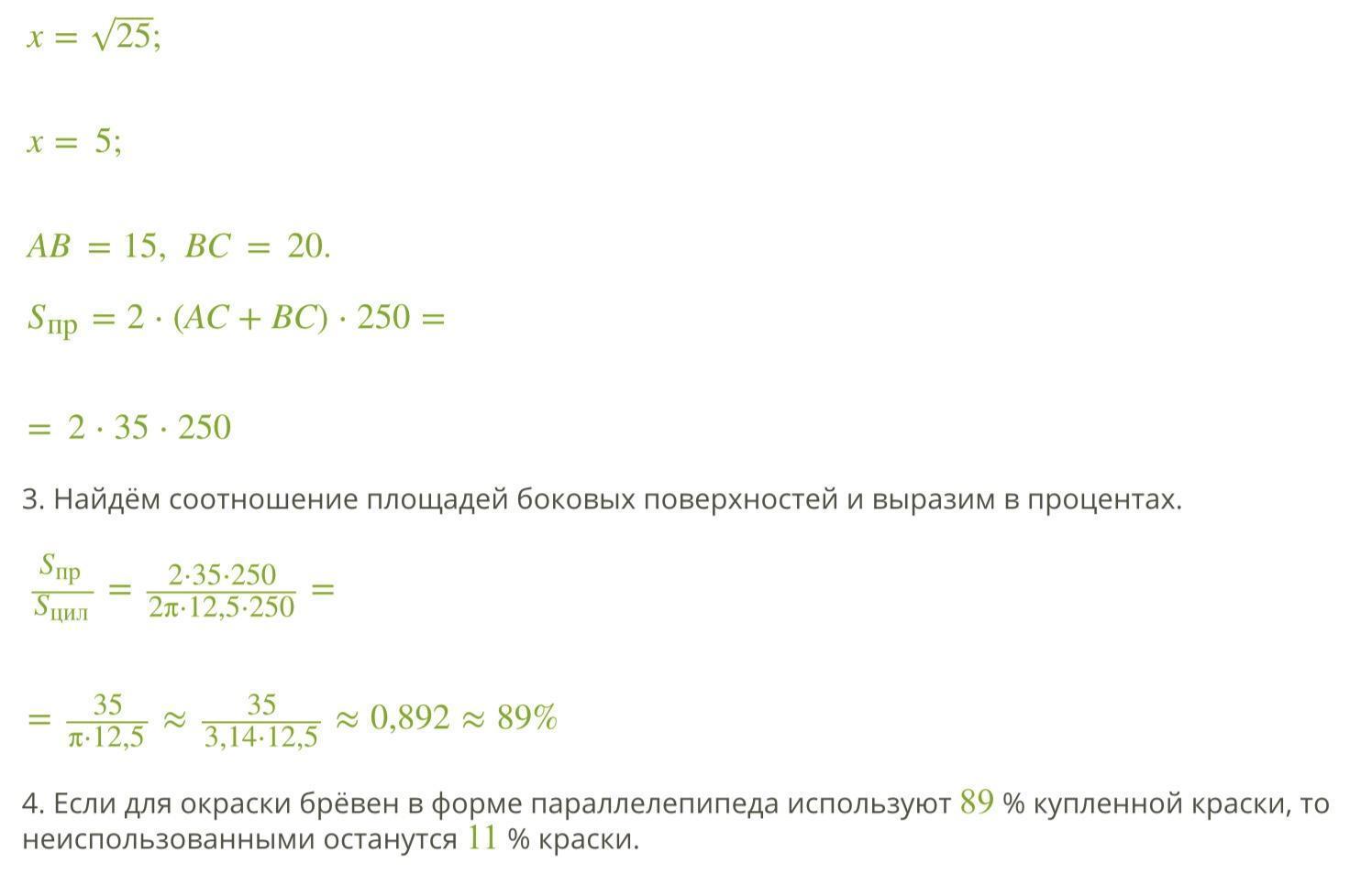 , где р₂ - процентное значение площади прямоугольного параллелепипеда относительно площади цилиндрического бревна.