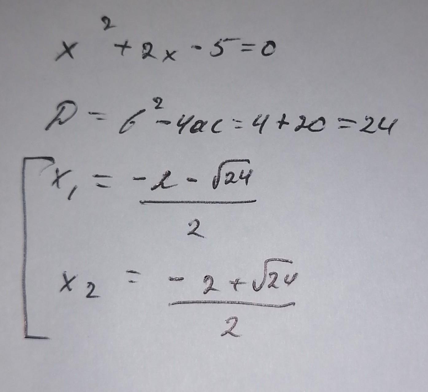 x^2+2x-5=0 нужно решить через дискриминант