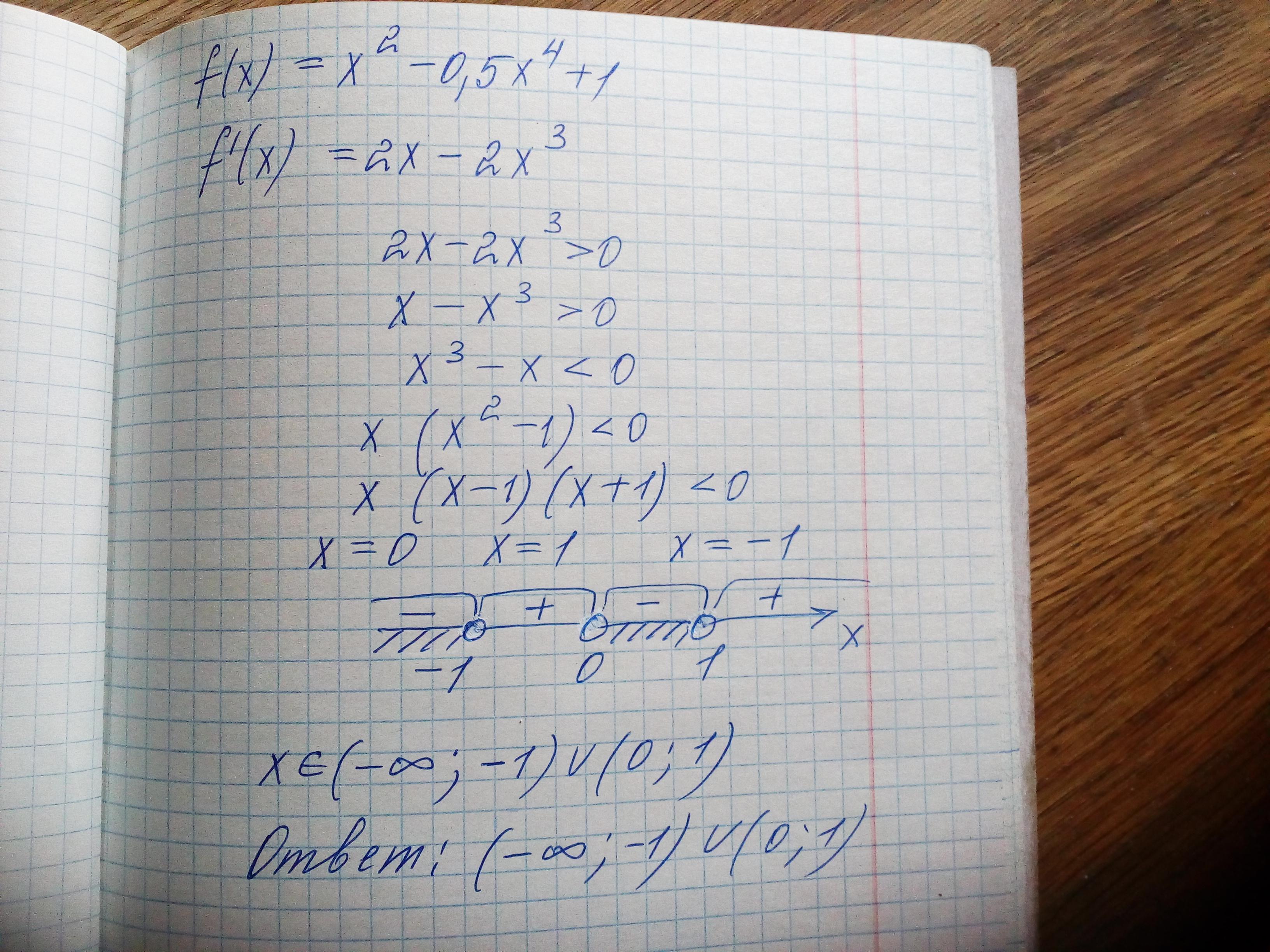 f'(x)>0, если f(x)=x²-0,5x⁴+1