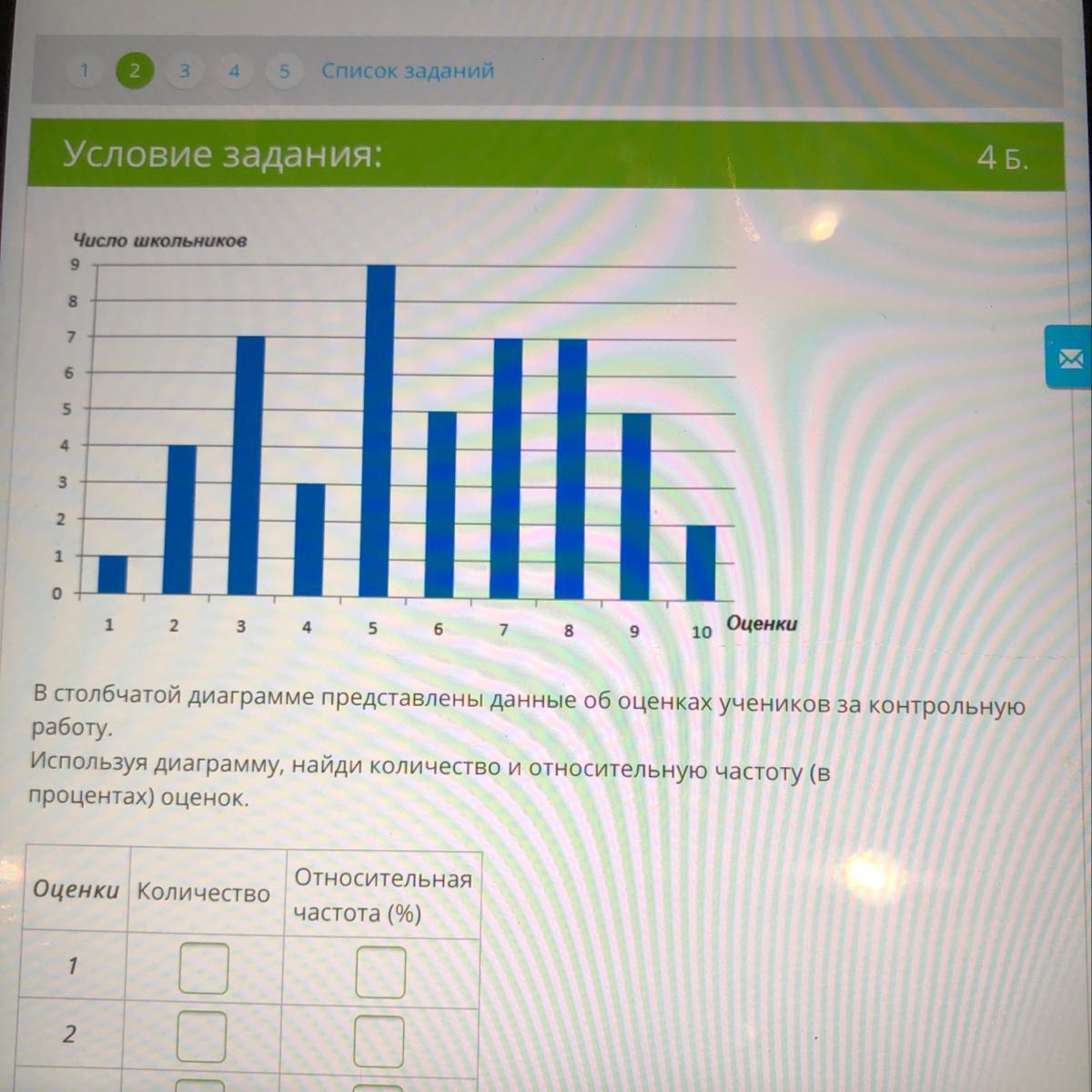 В столбчатой диаграмме представлены данные об оценках учеников