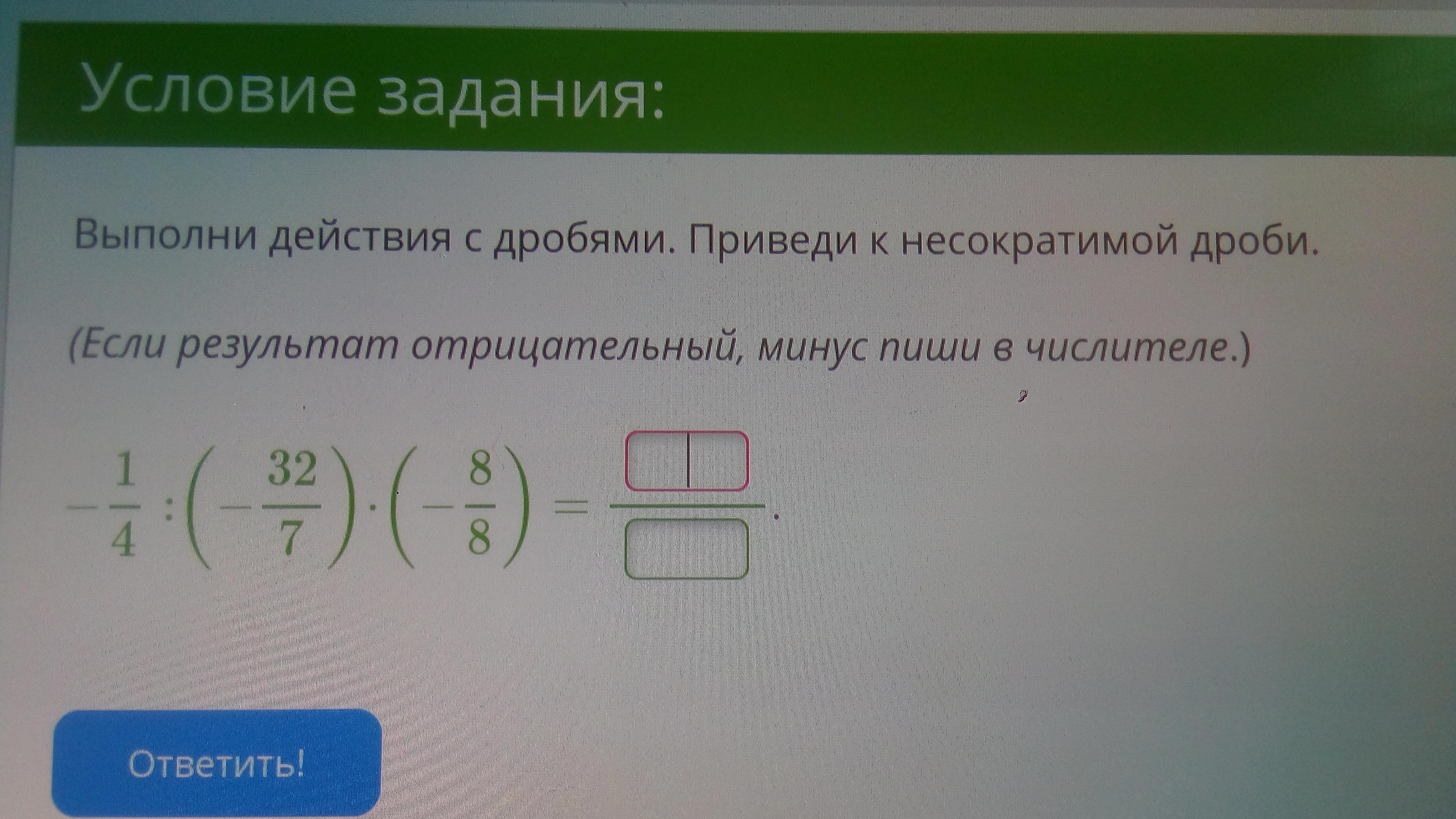 1) -1\4:(-32\7)=-1\4*(-7\32)=7\128