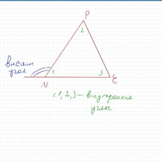 Определите величины внутренних углов равнобедренного треугольника NEP, если внешний угол угла N при основании NP равен 125 градусов
