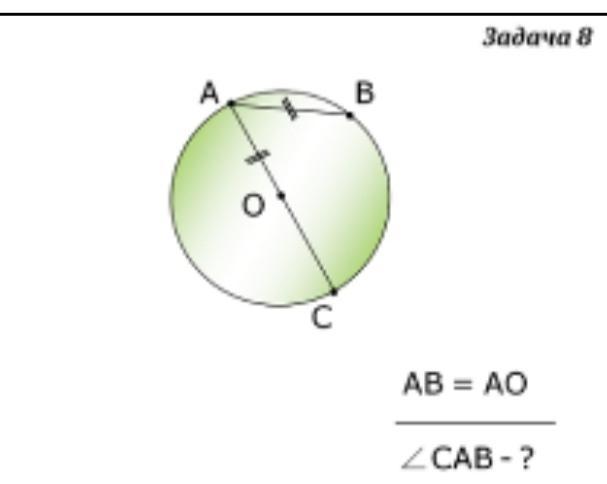 Если AO=AB, значит AB равен радиусу круга, следовательно, так как OB тоже радиус, то этот треугольник равносторонний и в нем все углы равны