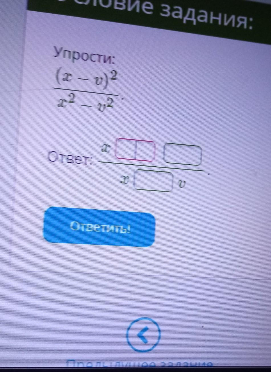 (x-u)^2/(x^2)-(u^2)=(x-u)*(x-u)/(x-u)*(x+u)=x-u/x+u