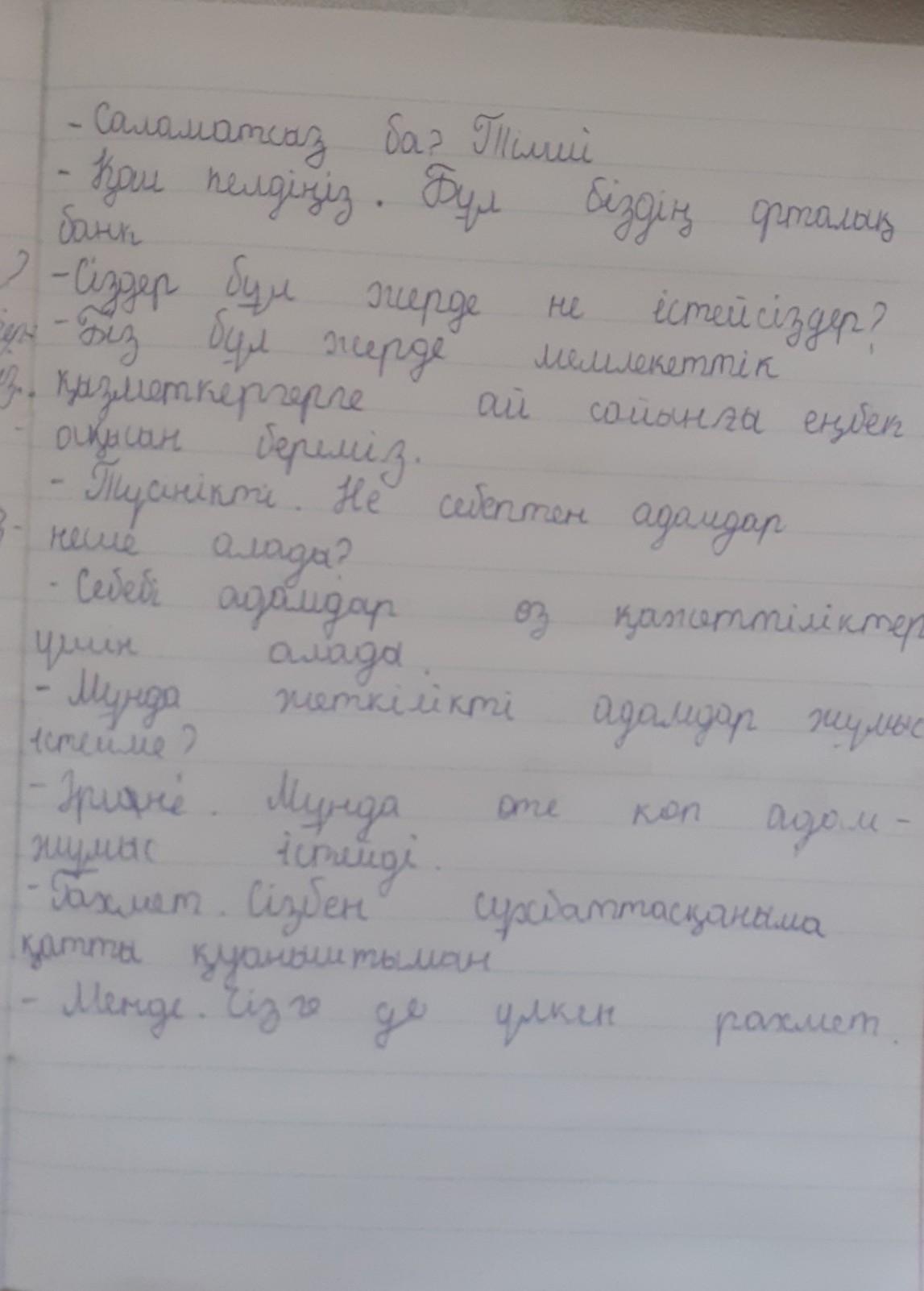 «Банк қызметкері және тілші» тақырыбына сұхбат құрастырыңыз