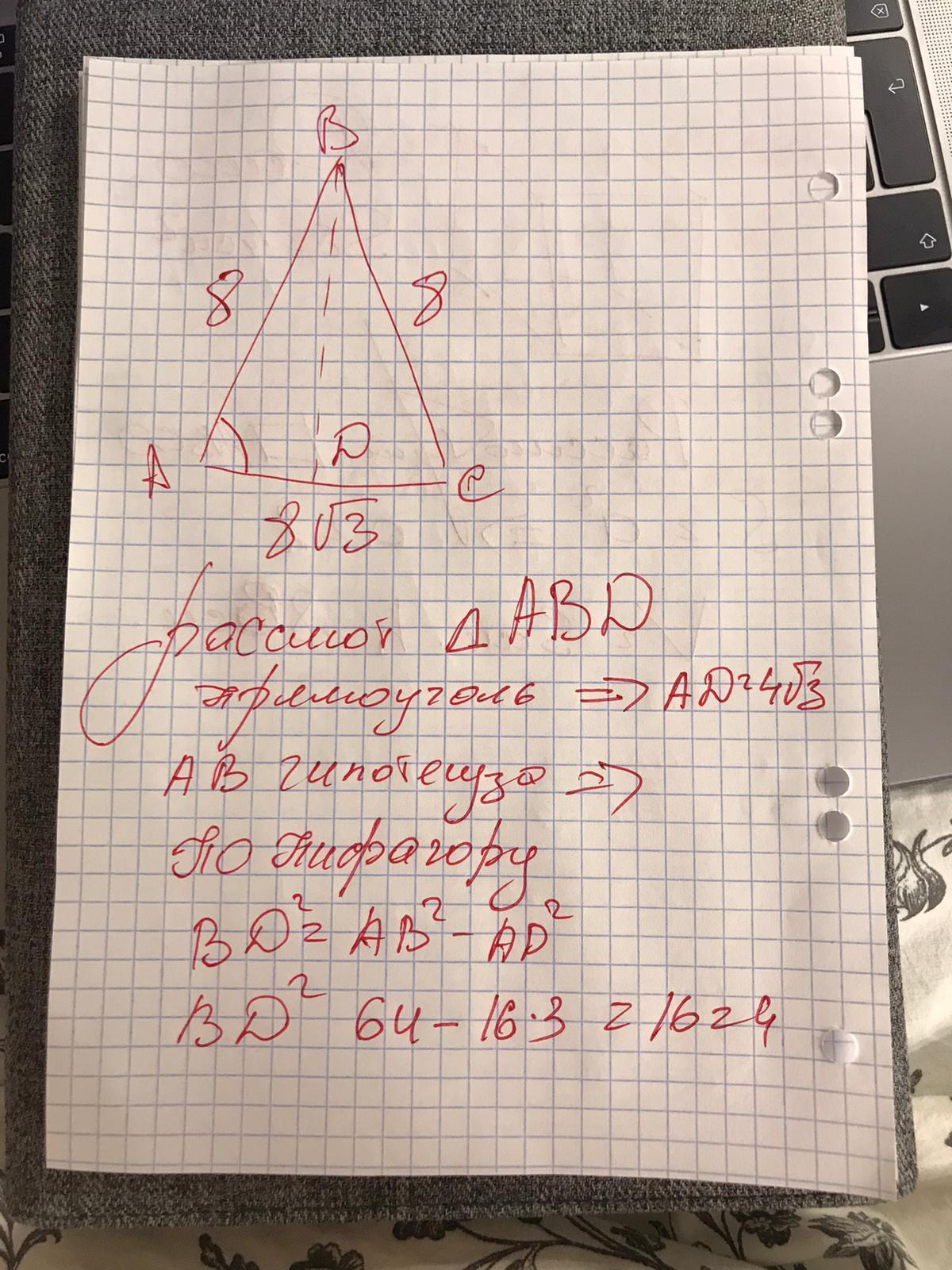 Рассмотреть прямоугольный треугольник abd И найти катет