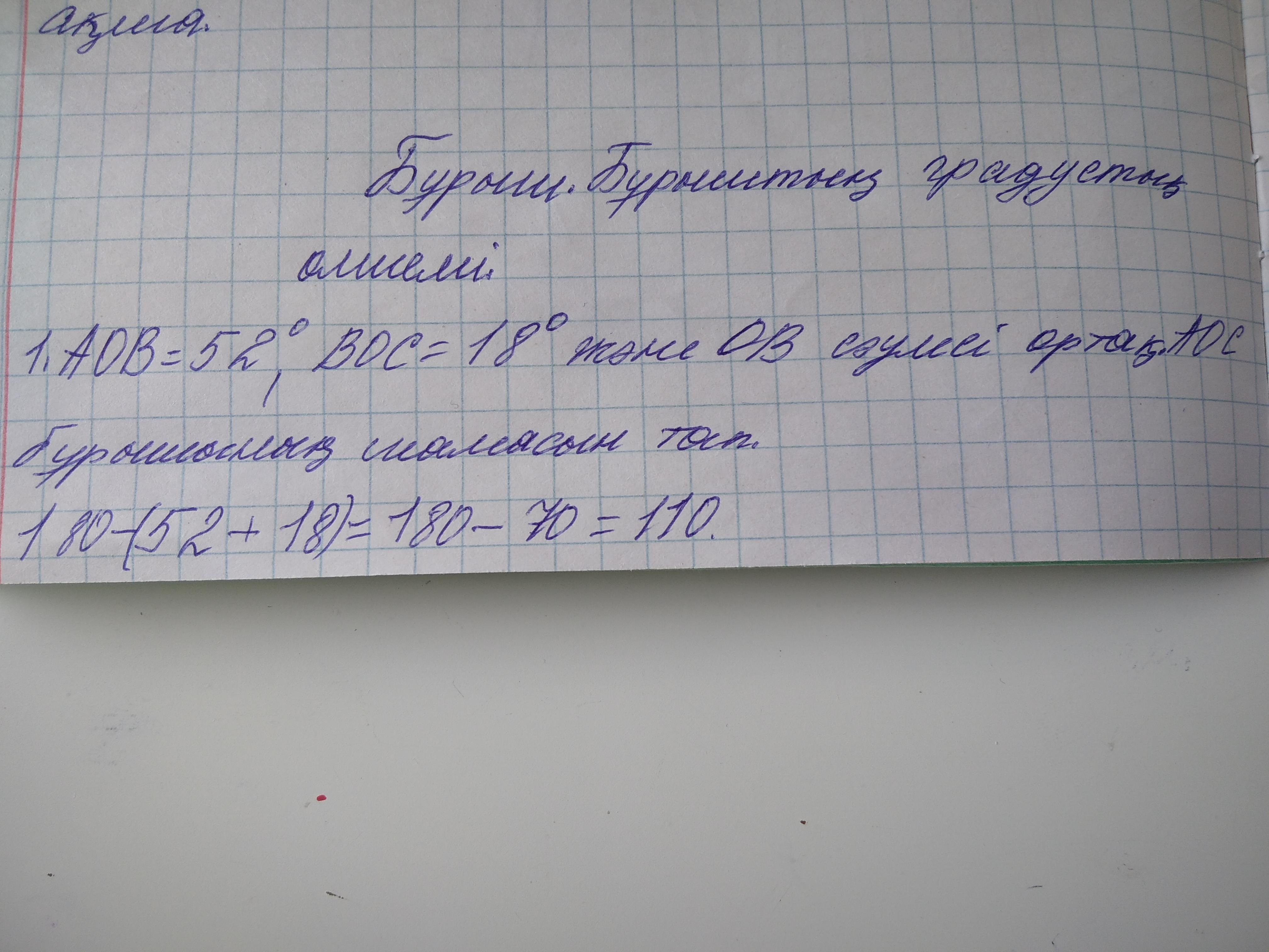 AOB=52°,BOC=18°,және OB сәулесі ортақ.AOC бұрышының шамасын тап