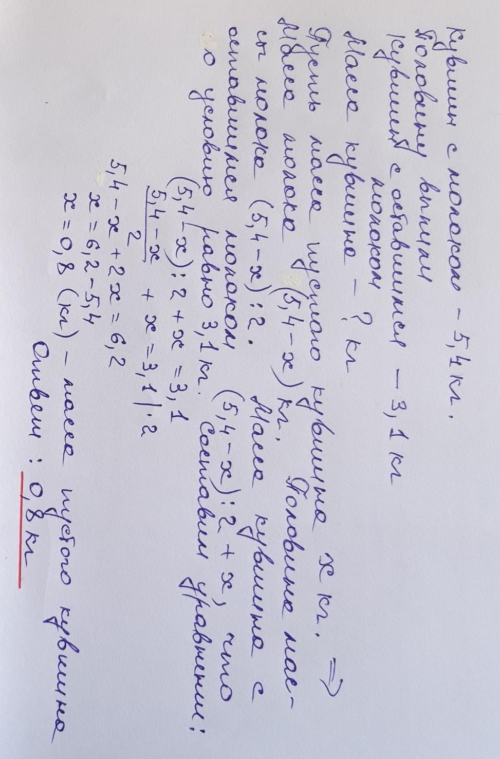3. Масса кувшина с молоком равна 5,4 кг. Когда из него вылили половину молока, то масса кувшина с соком стала 3,1. Какова масса кувшина?