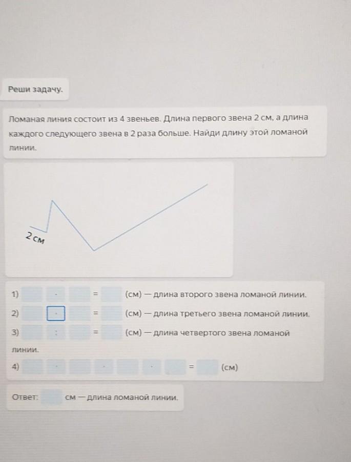 4•2=8( см)- 2 ломаная линия 16÷8=2(см)- 4 ломаная линия