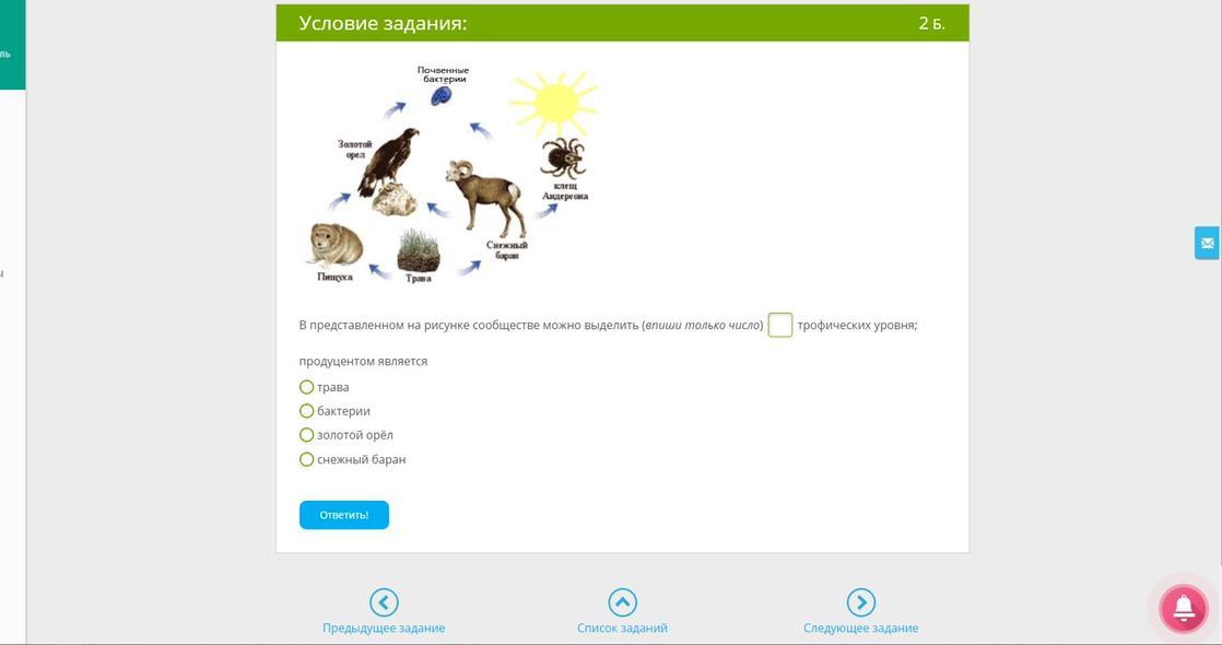 В предоставленном на рисунке сообществе можно выделить(впишите только число)трофических уровня;