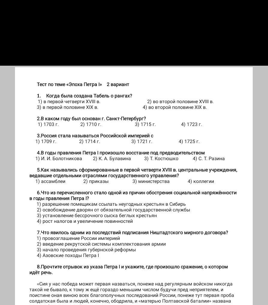 Тест по теме «Эпоха Петра I» 2 вариант