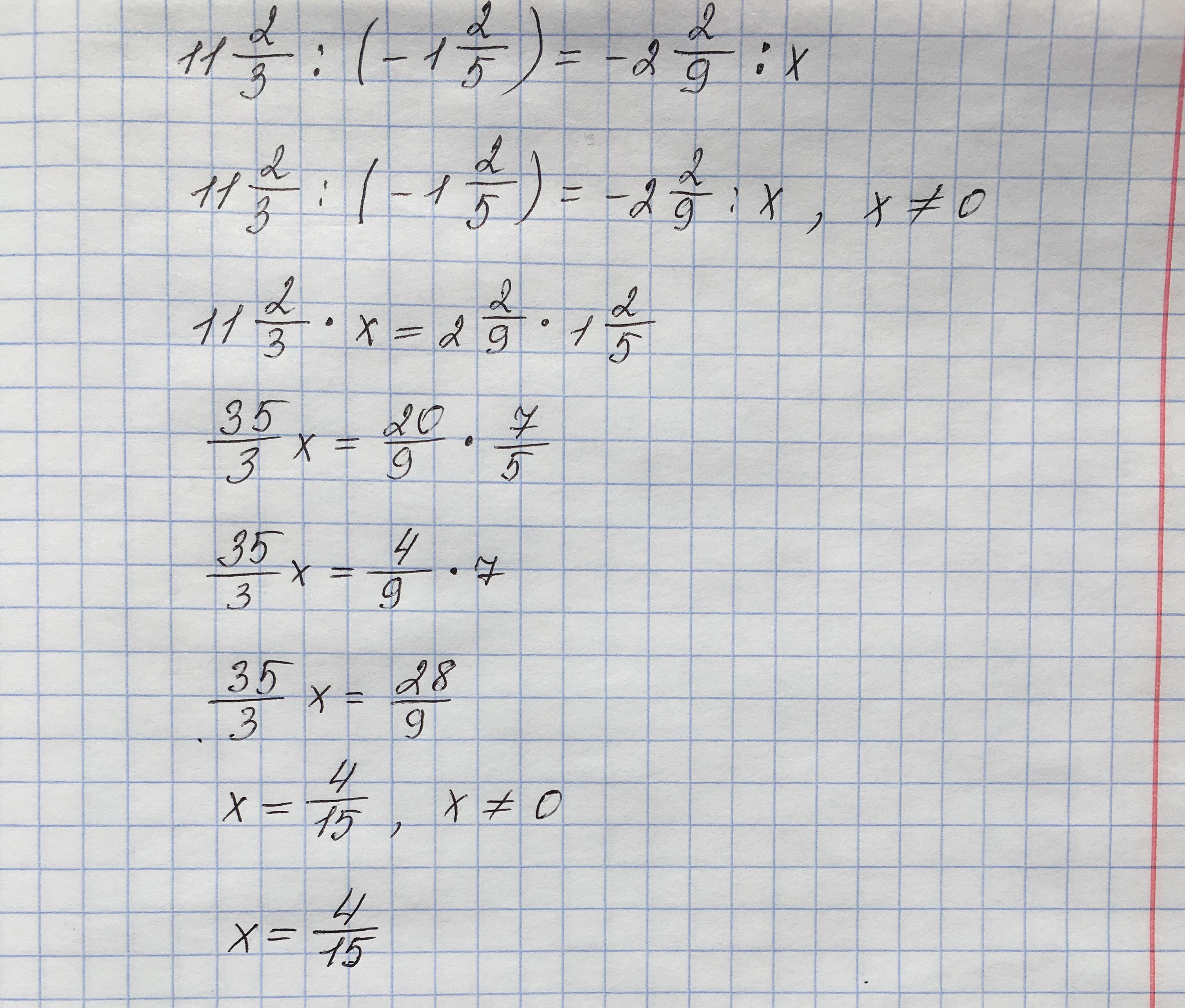 решите с пояснением 11 2/3 : ( -1 2/5) = -2 2/9 : х