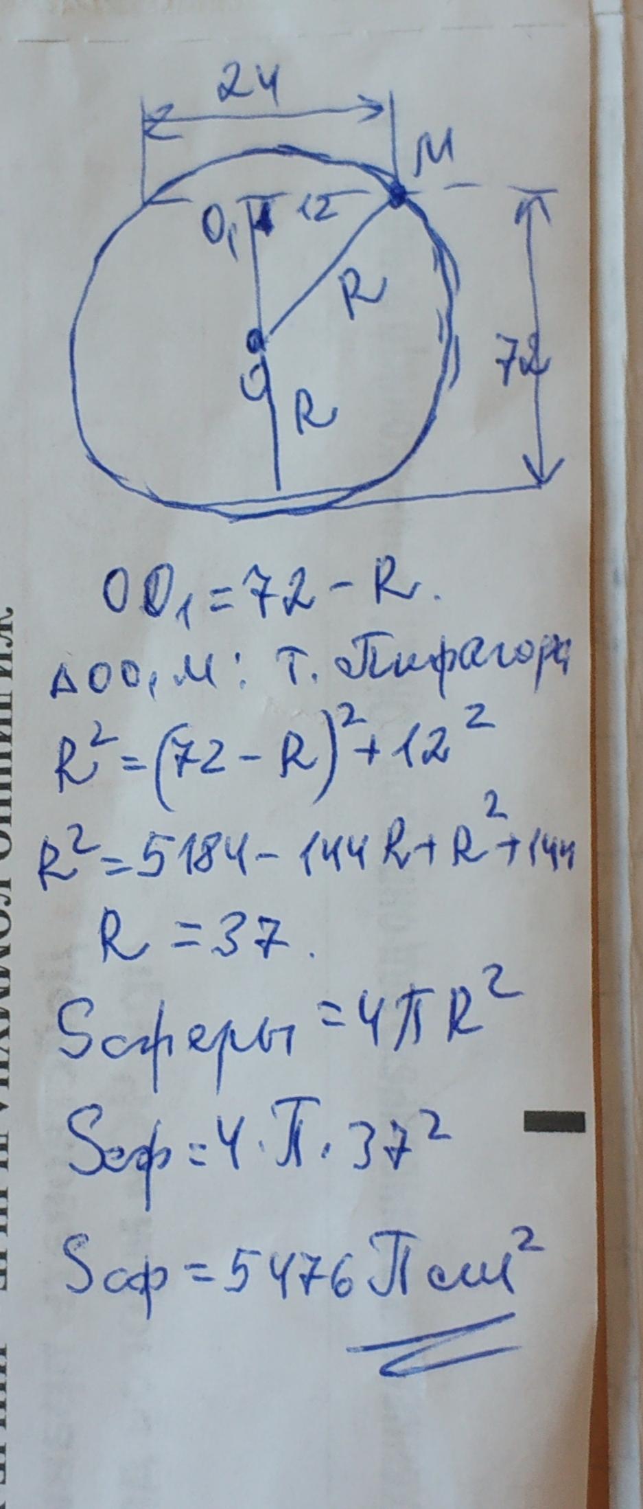 Используя данные рисунка,найдите площадь сферы(точка O-центр сферы)
