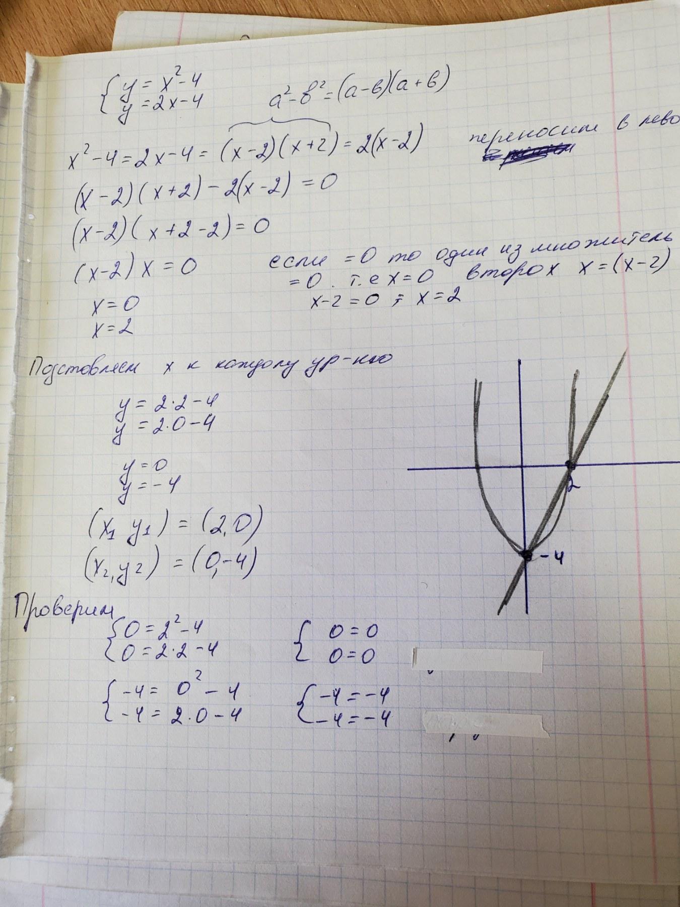 1) y = x^2 - 4 и y = 2x - 4