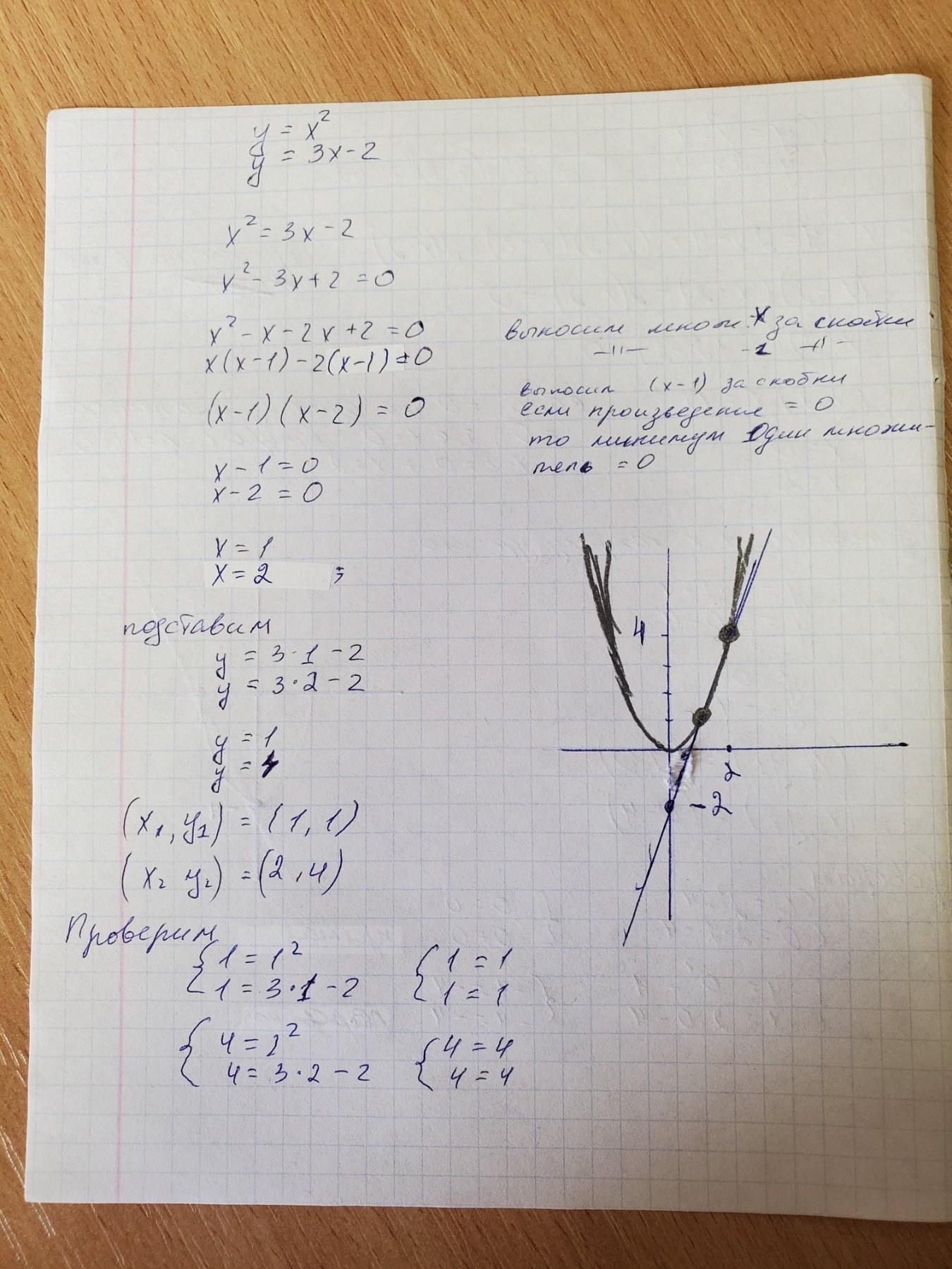 2)y = x^2 и y = 3x - 2