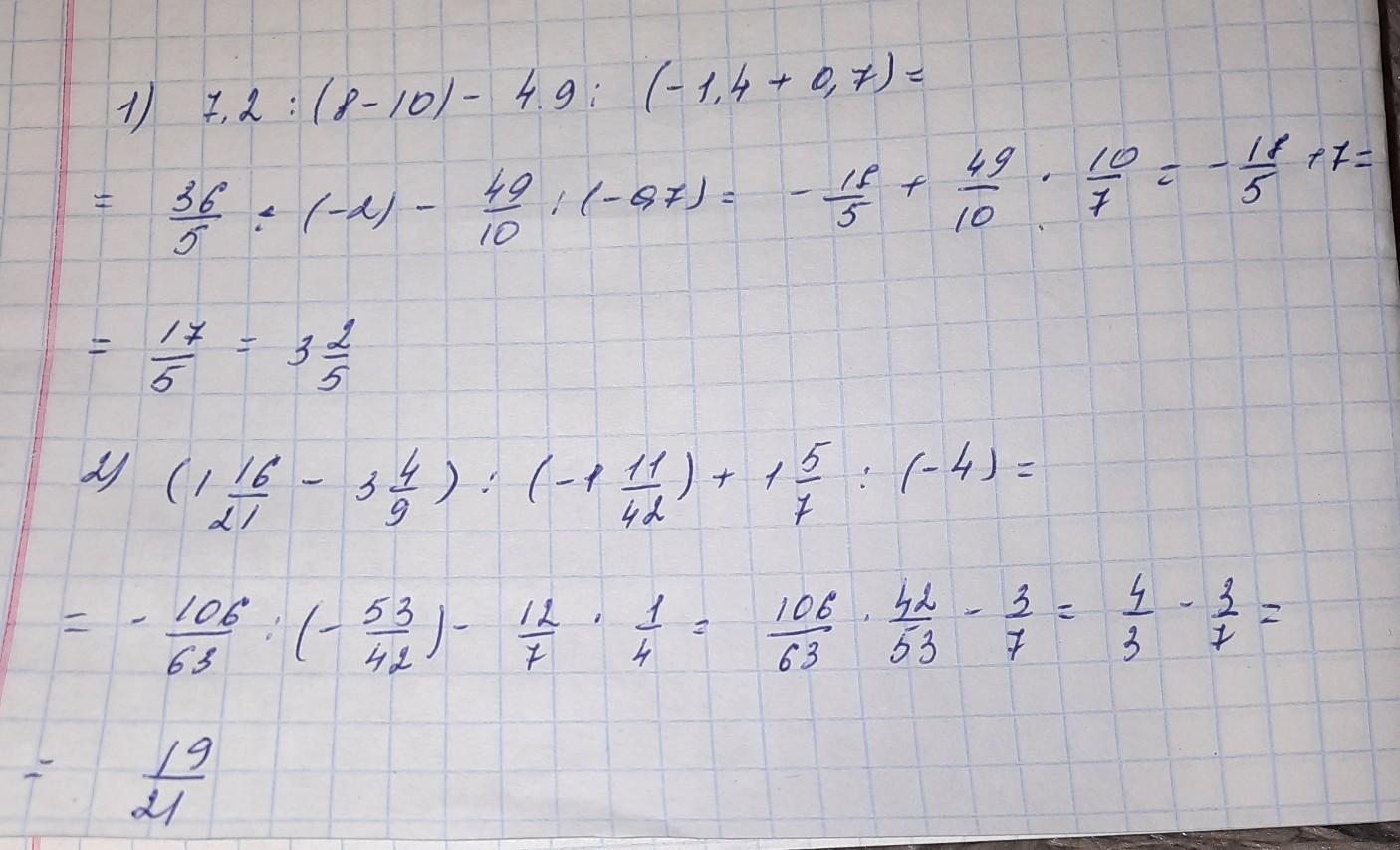 1) 7.2 : (8-10)-4.9 : (-1.4+0.7)=