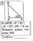 2) Так как ∠KMP = ∠MPK = 45, то треугольник MPK -равнобедренный треугольник (Углы при основании равны)⇒ KP = MK = 8 см