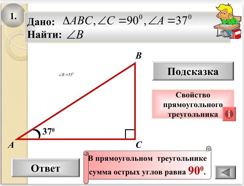 По свойству о сумме острых углов в прямоугольном треугольнике: