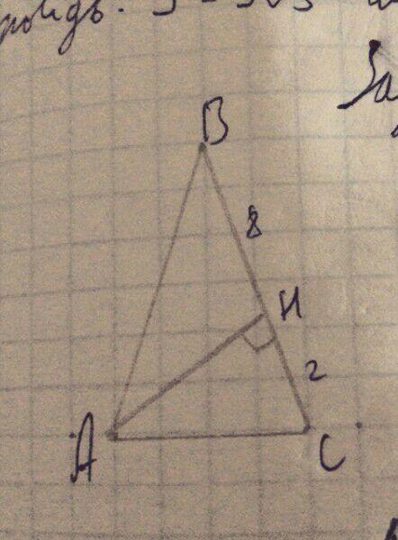 Высота равнобедренного треугольника, проведенная к боковой стороне, разделяет ее на отрезки длиной 2 см и 8 см, считая от вершины угла при основании. Найти площадь треугольника.