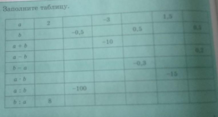 Берём первый столбик. Известно только число а=2, и что если б:а получится число 8. Следовательно,чтобы найти число б нам надо 8*2=16. Мы нашли б, а дальше просто выполняем с этими числами примеры а+б, а-б и тд. И так со всеми столбиками