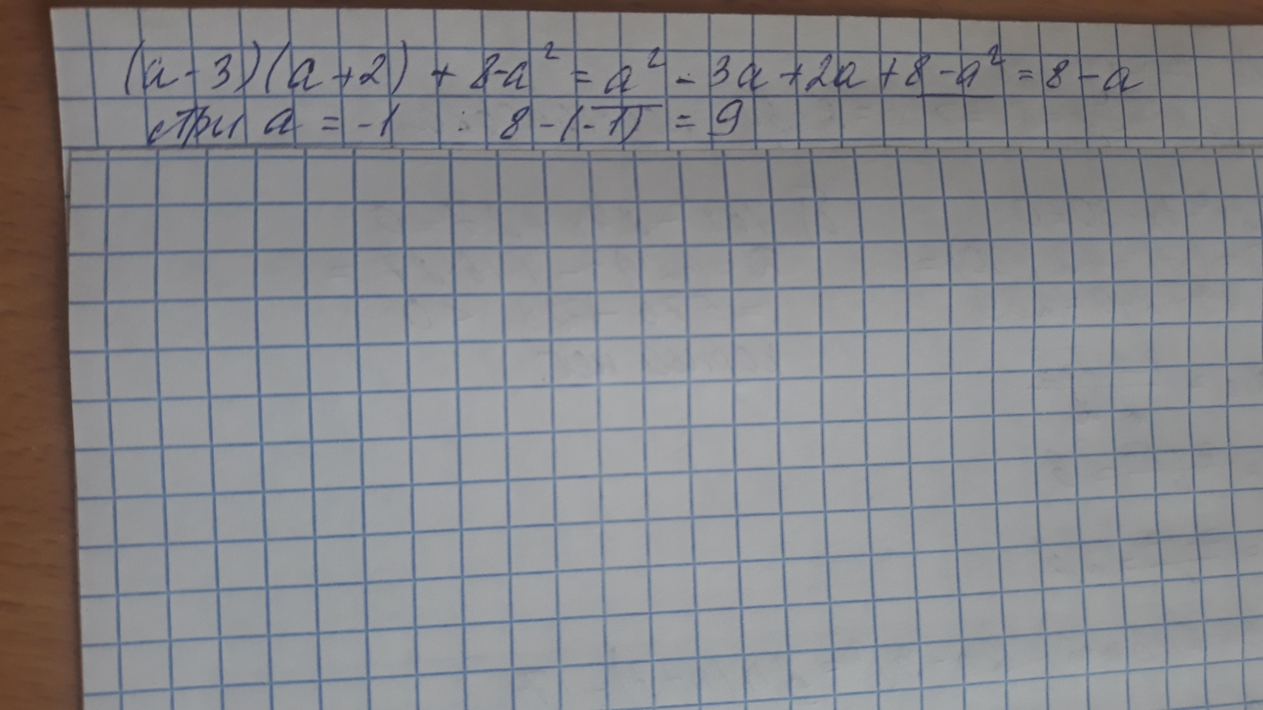 упростите выражение (а-3)×(а+2)+8-а² и найдите его значение при а= -1