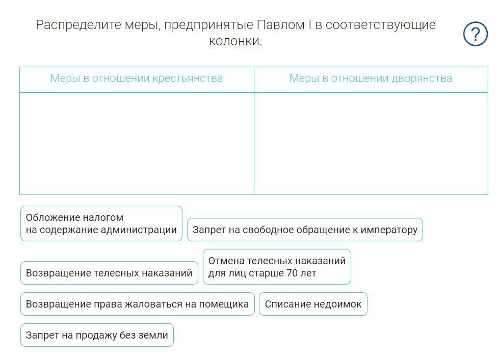 для лиц старше 70 лет Списание недоимок Возвращение телесных наказаний Возвращение права жаловаться на помещика Запрет на свободное обращение к императору Запрет на продажу без земли Обложение налогом
