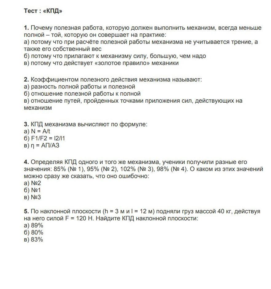 тест КПД 7 КЛАСС ПОМОГИТЕ СРОЧНО ПОЖАЛУЙСТА!!!!!!!