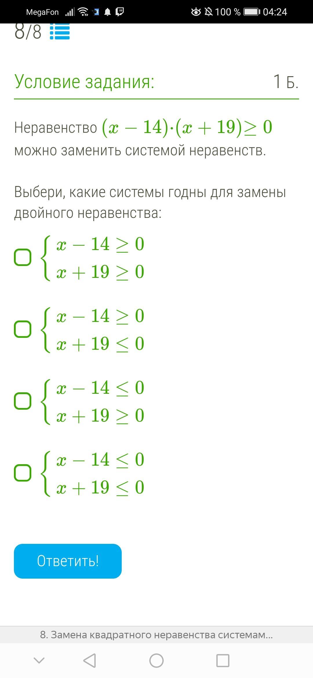 ПОМОГИТЕ, СРОЧНО, УМОЛЯЮ!Замена квадратного неравенства системами неравенств.
