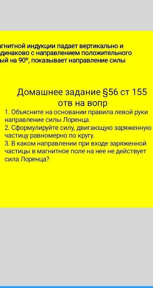 1)Если на ладонь левой руки вектор магнитной индукции падает вертикально и направление указанного пальца одинаково с направлением положительного заряда , то большой палец,отодвинутый на 90°,показывает направление силы Лоренца