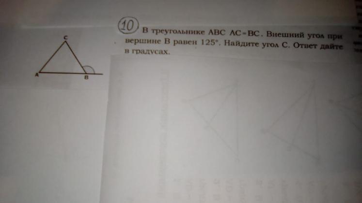 Сумма внешнего(125) и внутреннего (АВС) углов тре-ка равна 180. т.е.