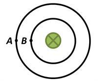 1. Вокруг прямого проводника с током (см. рисунок) существует магнитное поле. Определи направление линий этого магнитного поля в точках A и B .