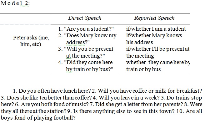 week? 5.Peter asks if trains stop here? 6.Peter asks us if we both are fond of music? 7. Peter asks her if she got a