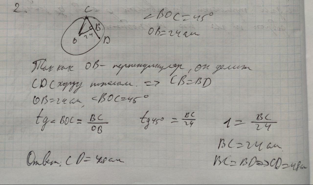Из центра окружности О к хорде OВ, проведен перпендикуляр ОС, равный 24см