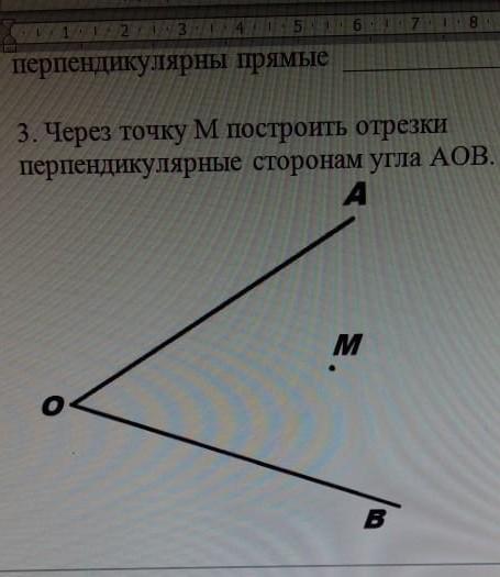 Через точку M построить отрезки перпендикулярве сторонам угла AOB