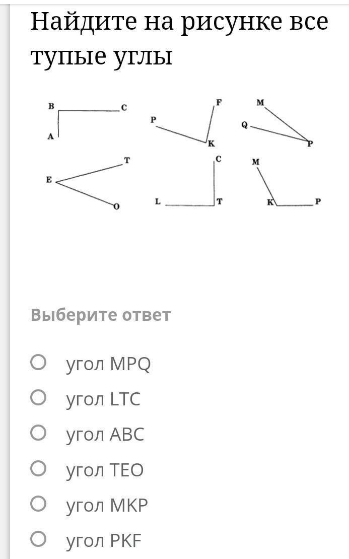 Тупые углы - это те которые больше 90, но меньше 180 градусов